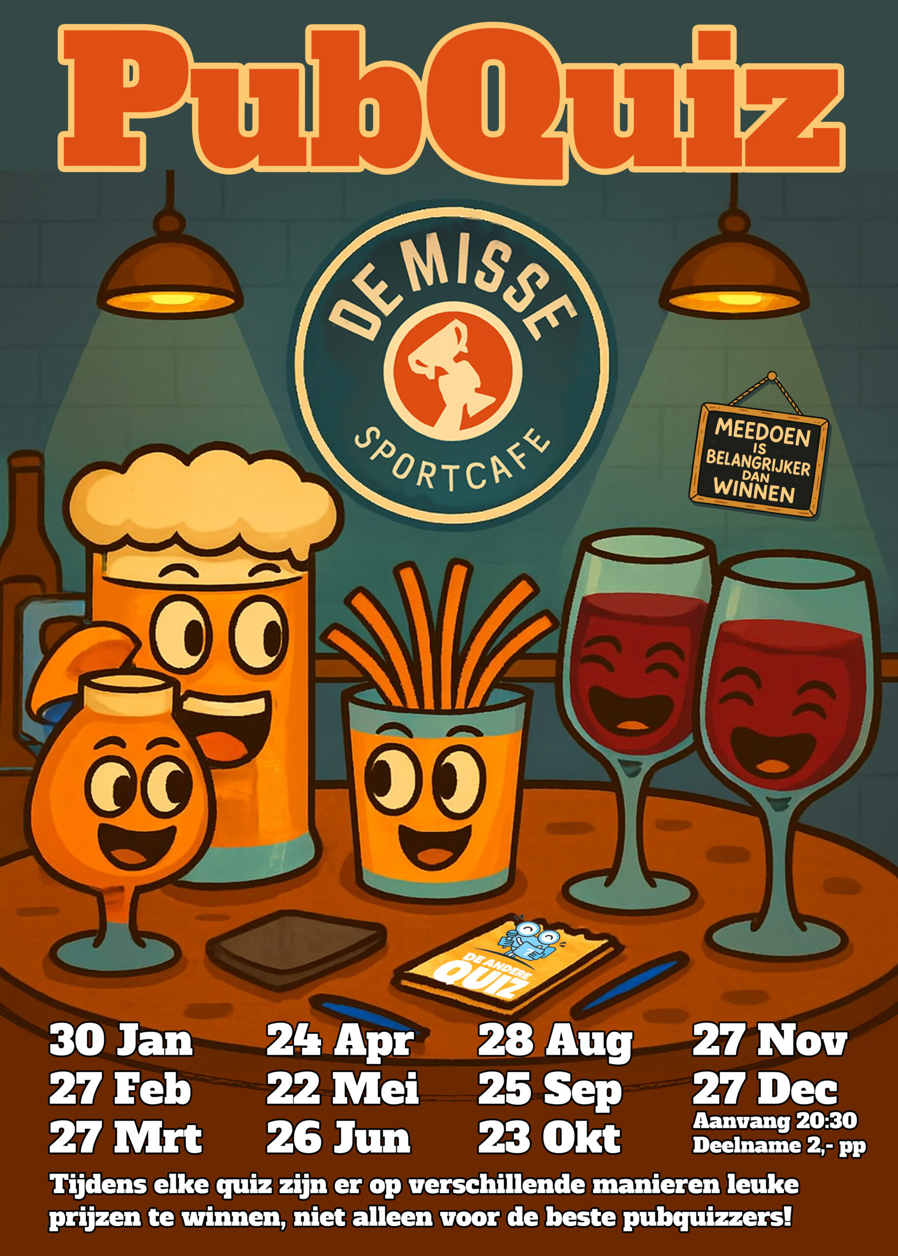 Sportcafé de Misse is een gemoedelijke en gezellige plek gevestigd in Den Dungen bij sporthal de Misse. Een plek voor sportliefhebbers om te genieten van live wedstrijden zoals Volleybal en Basketbal in de hal of Formule 1 en voetbalwedstrijden op ons grote scherm, voor sporters om lekker te ontladen na de training en uiteraard voor iedereen die